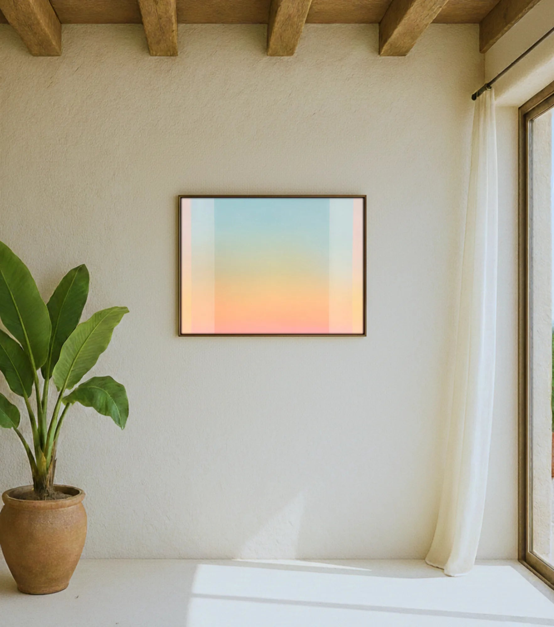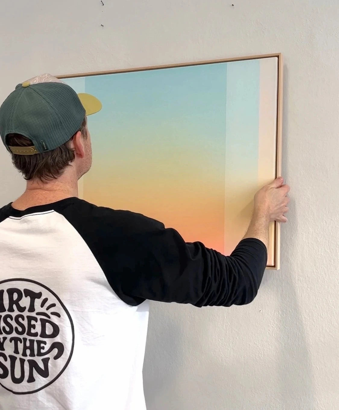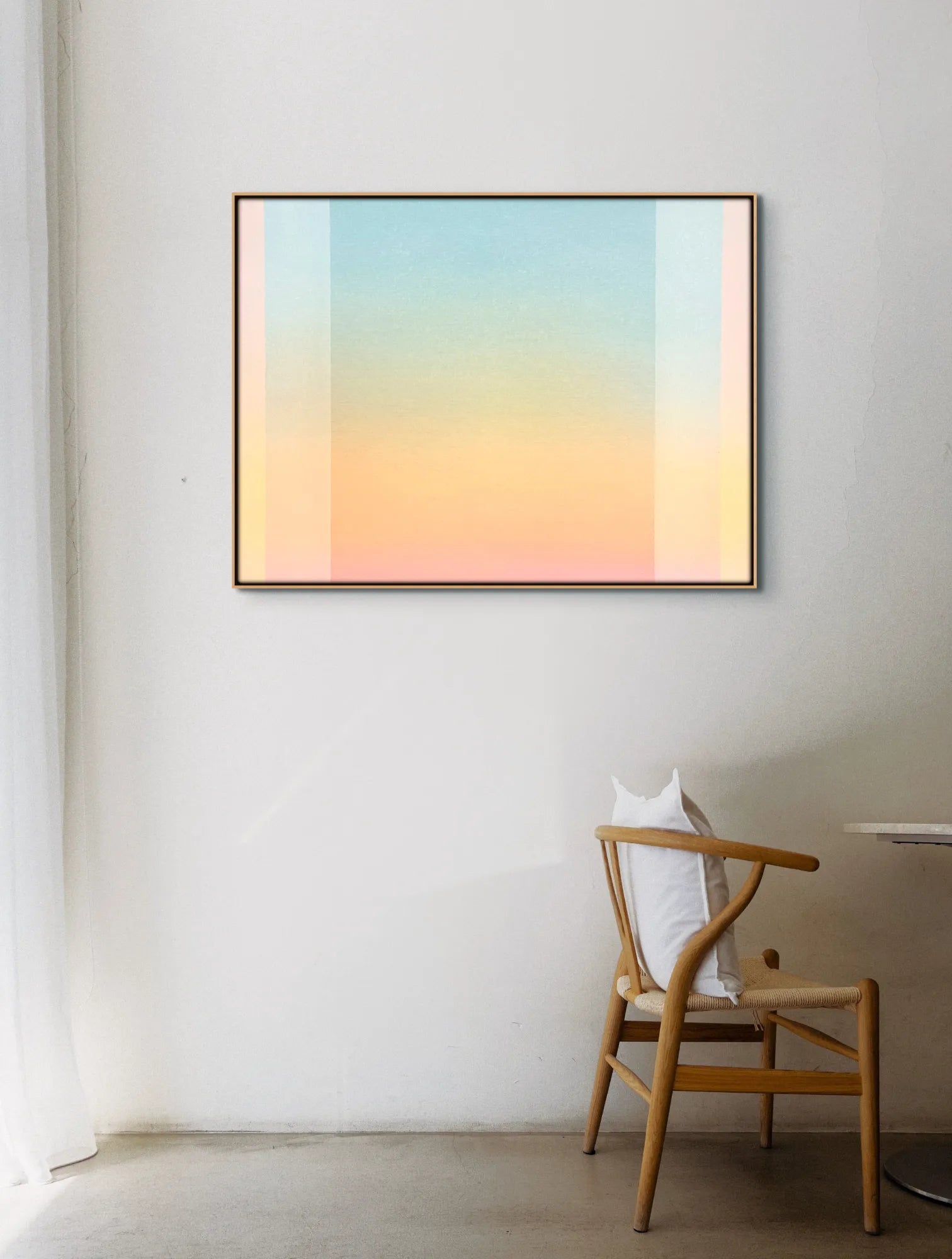 Framed in natural lime wood, ready to hang